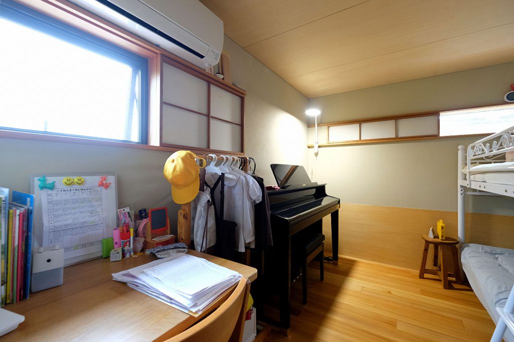 「中学1年生と小学1年生の兄妹なので、寝る時間がだいぶ違うんです。上の子は11時まで起きているけど、下の子は9時頃に寝る。さらに下の子は去年からピアノをはじめまして。その置き場所を考えたら、寝室が一番良かったんですよね。