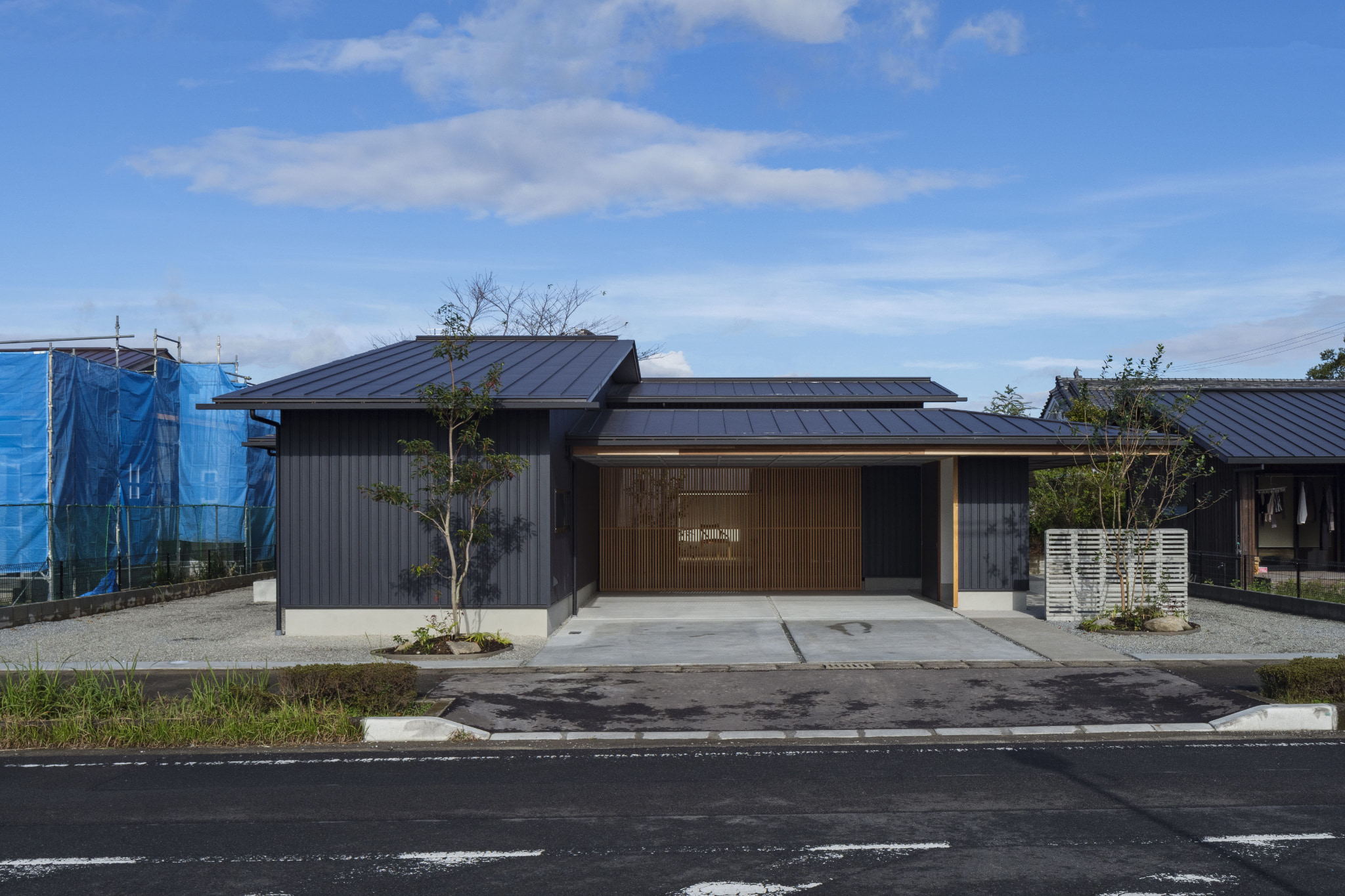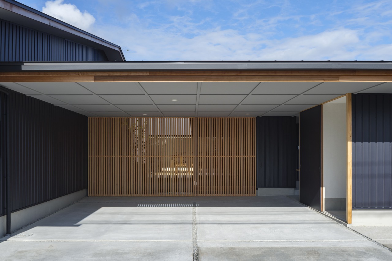 格子ガレージで囲まれた
