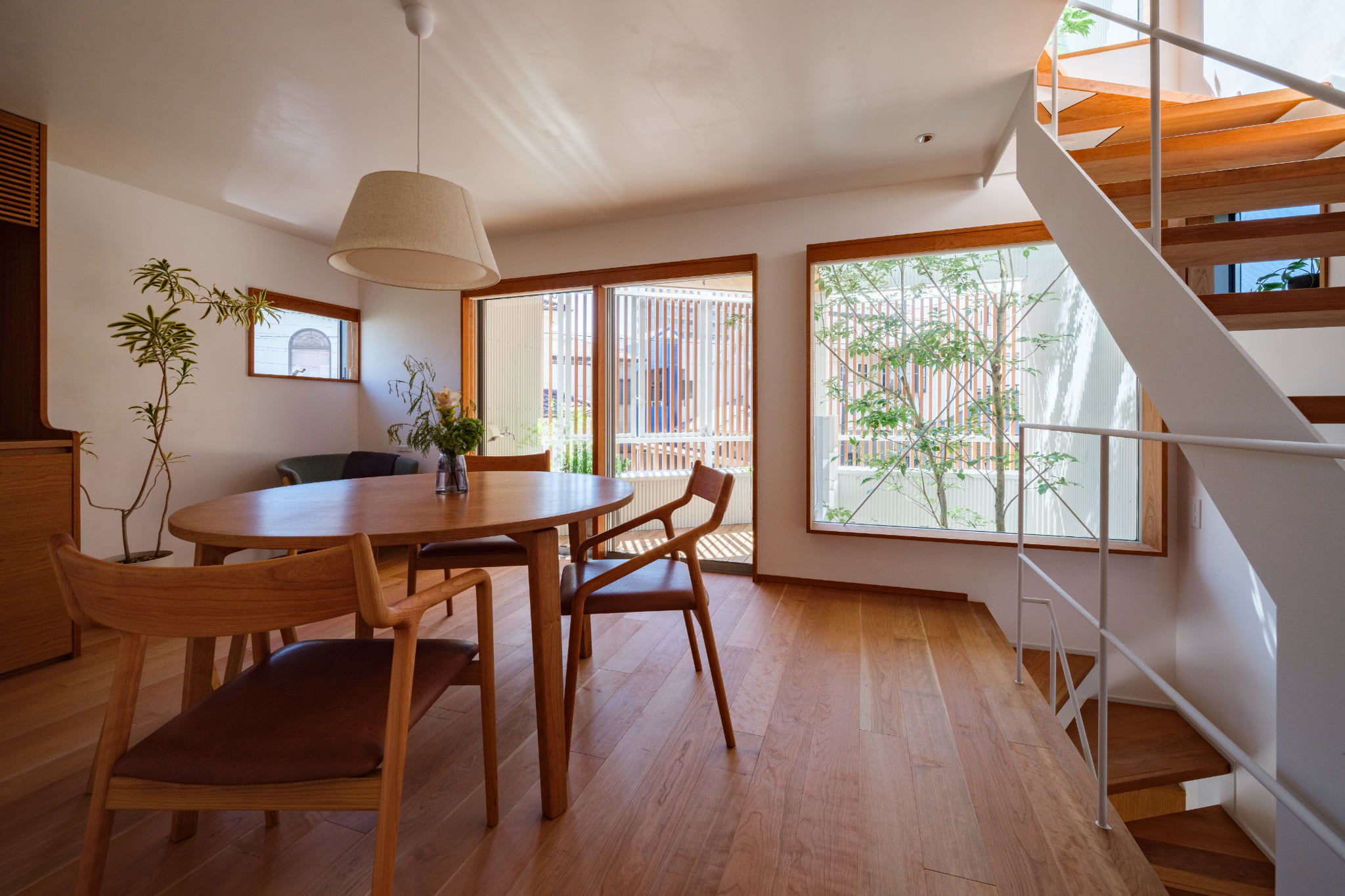 光庭からの光を存分に取り入れる開口計画。