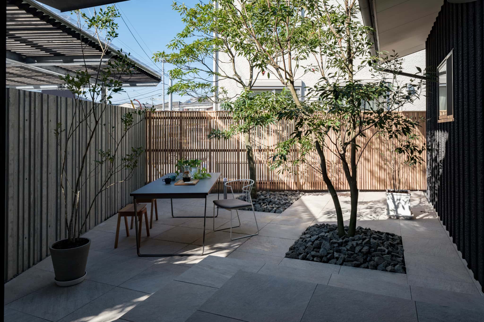 庭と玄関との空間も曖昧にすることで