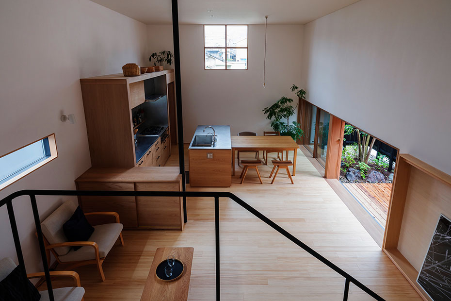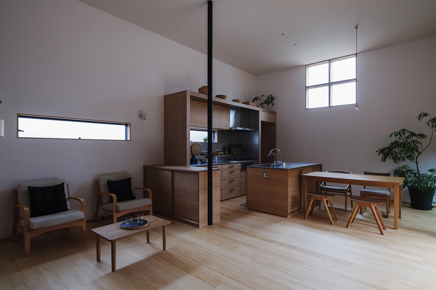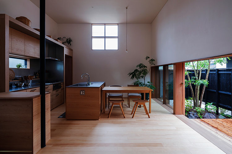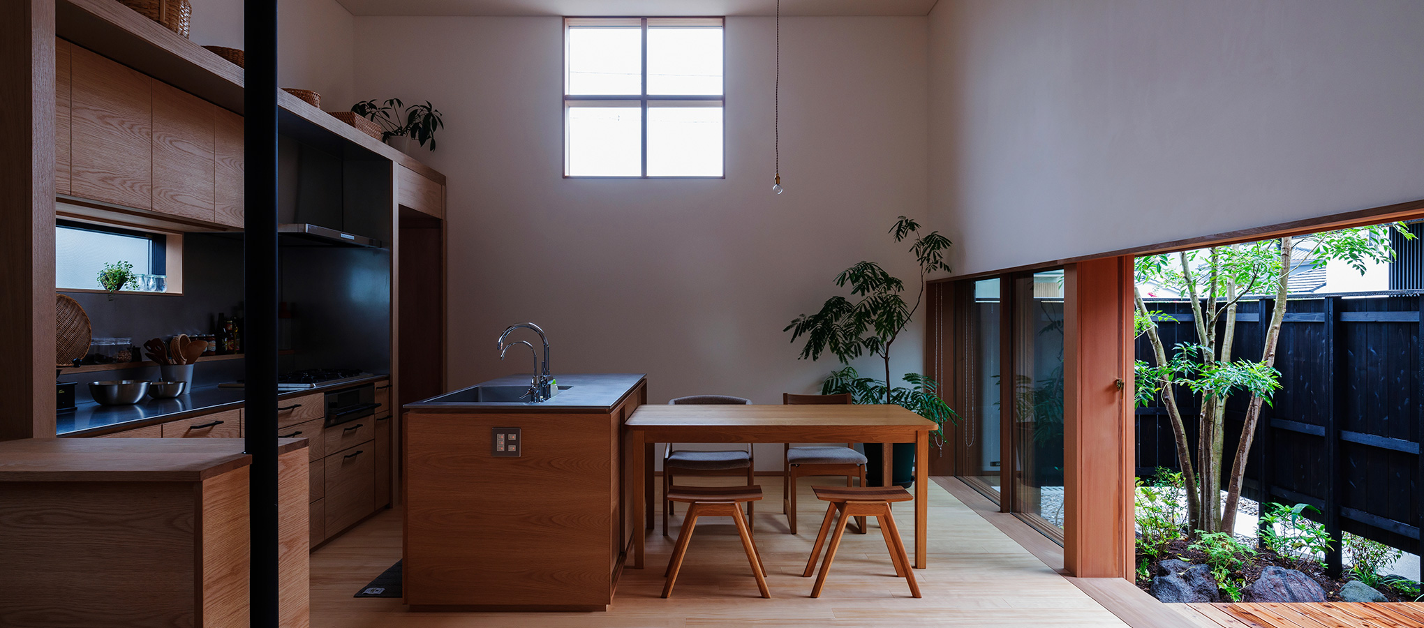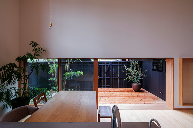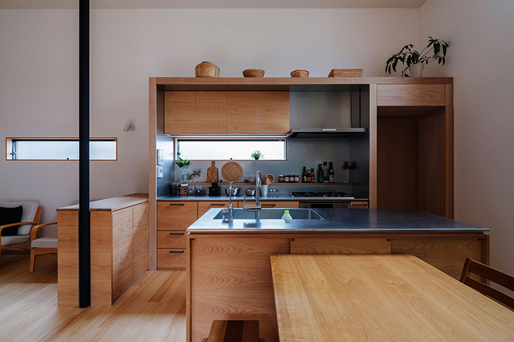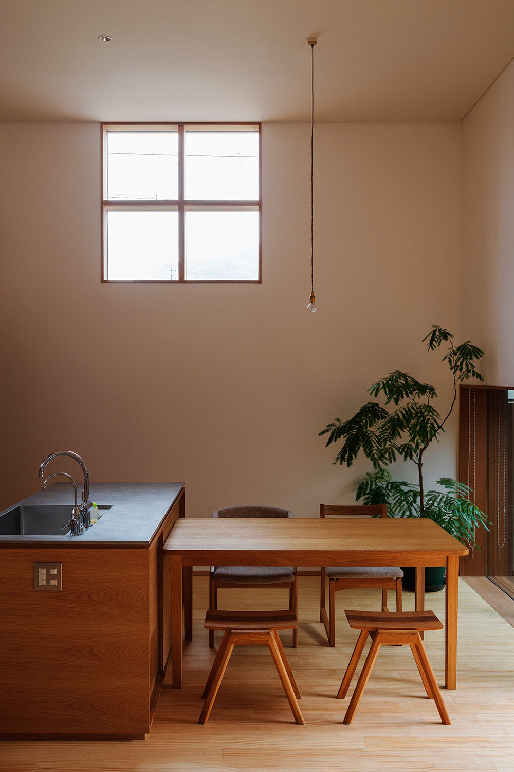 ダイニングには四角い十字窓。