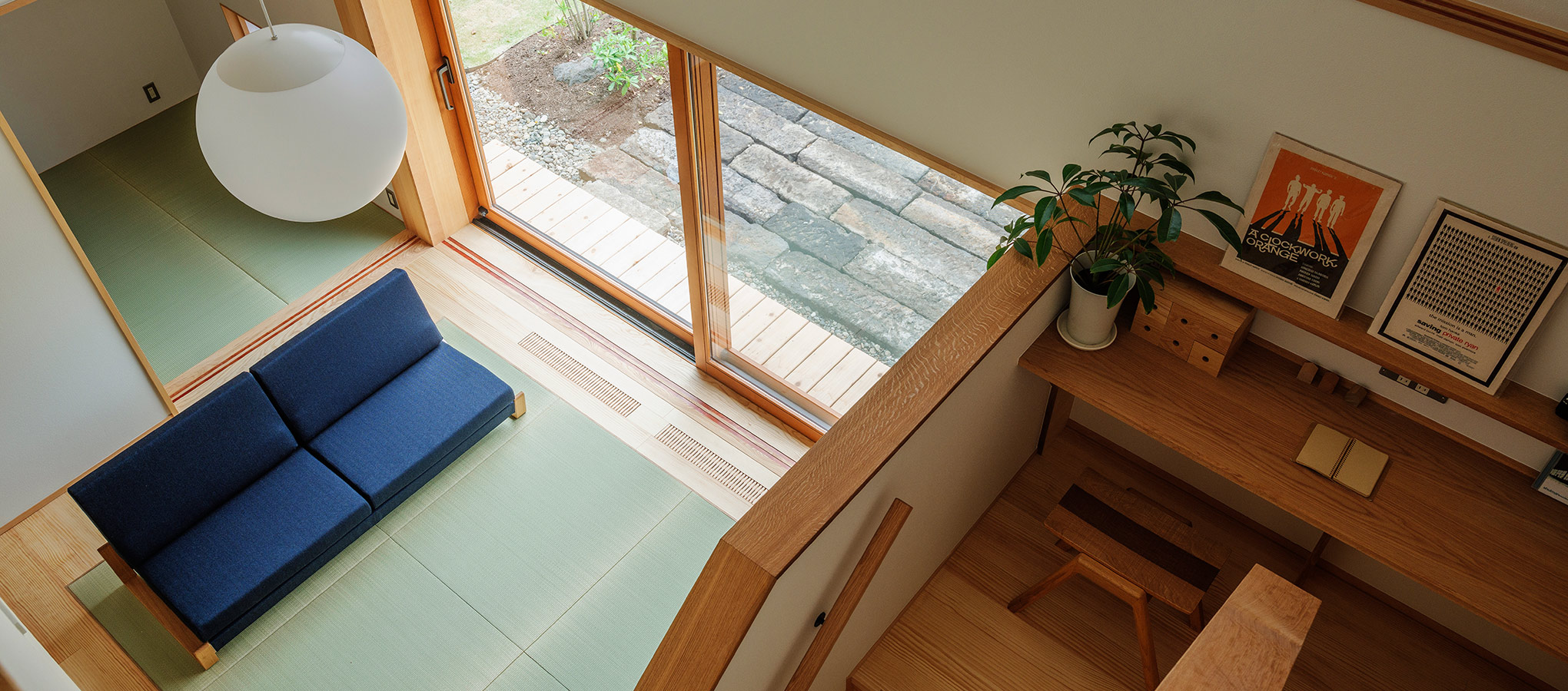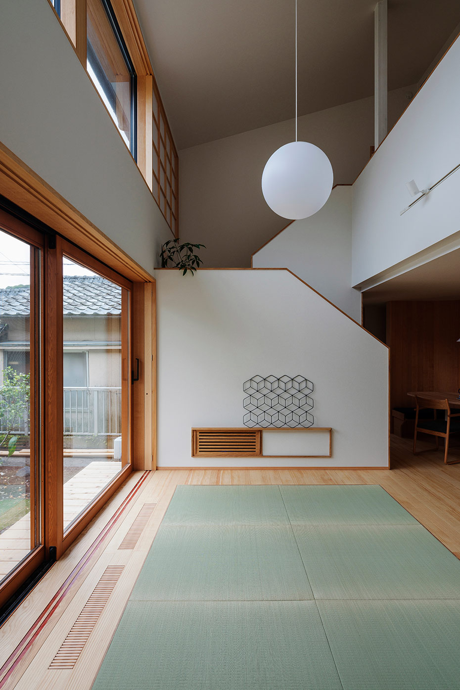 吹き抜けの大きな窓から