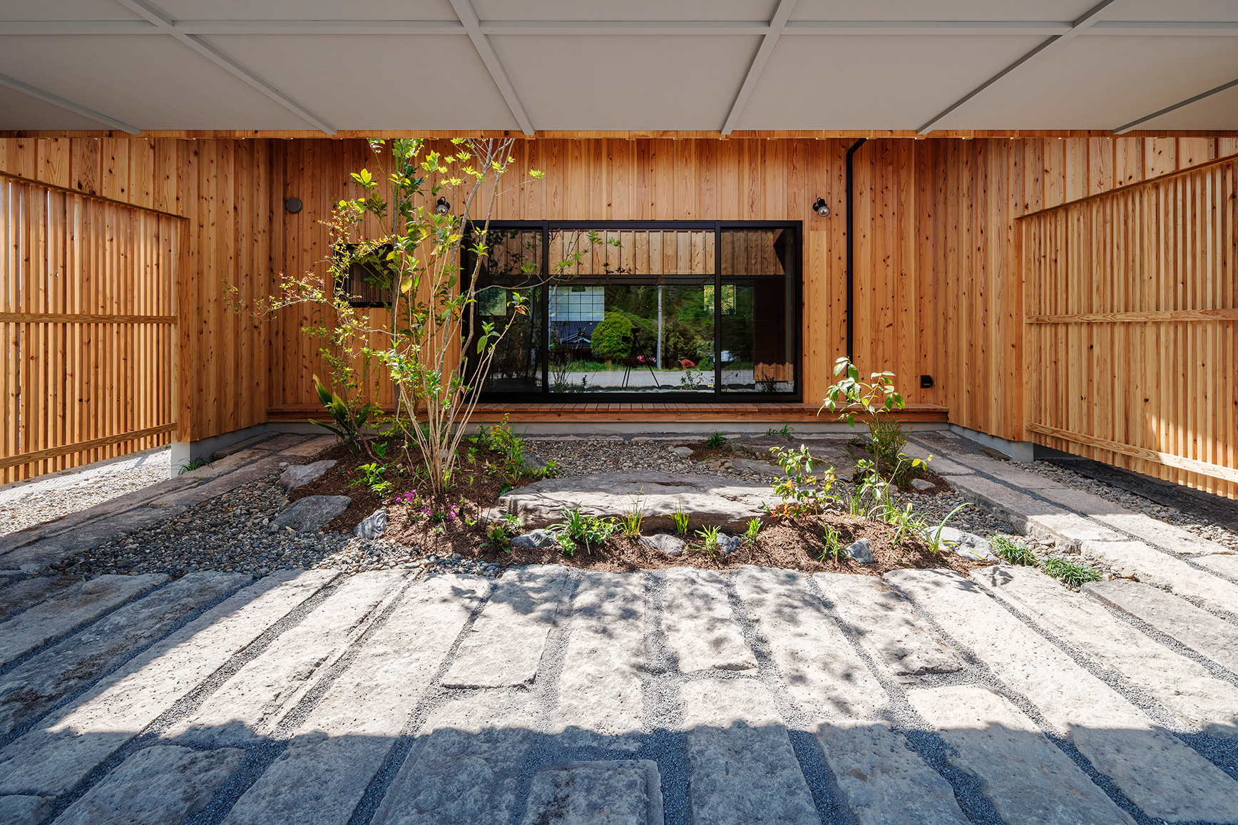 庭は外壁と格子でぐるり囲むが