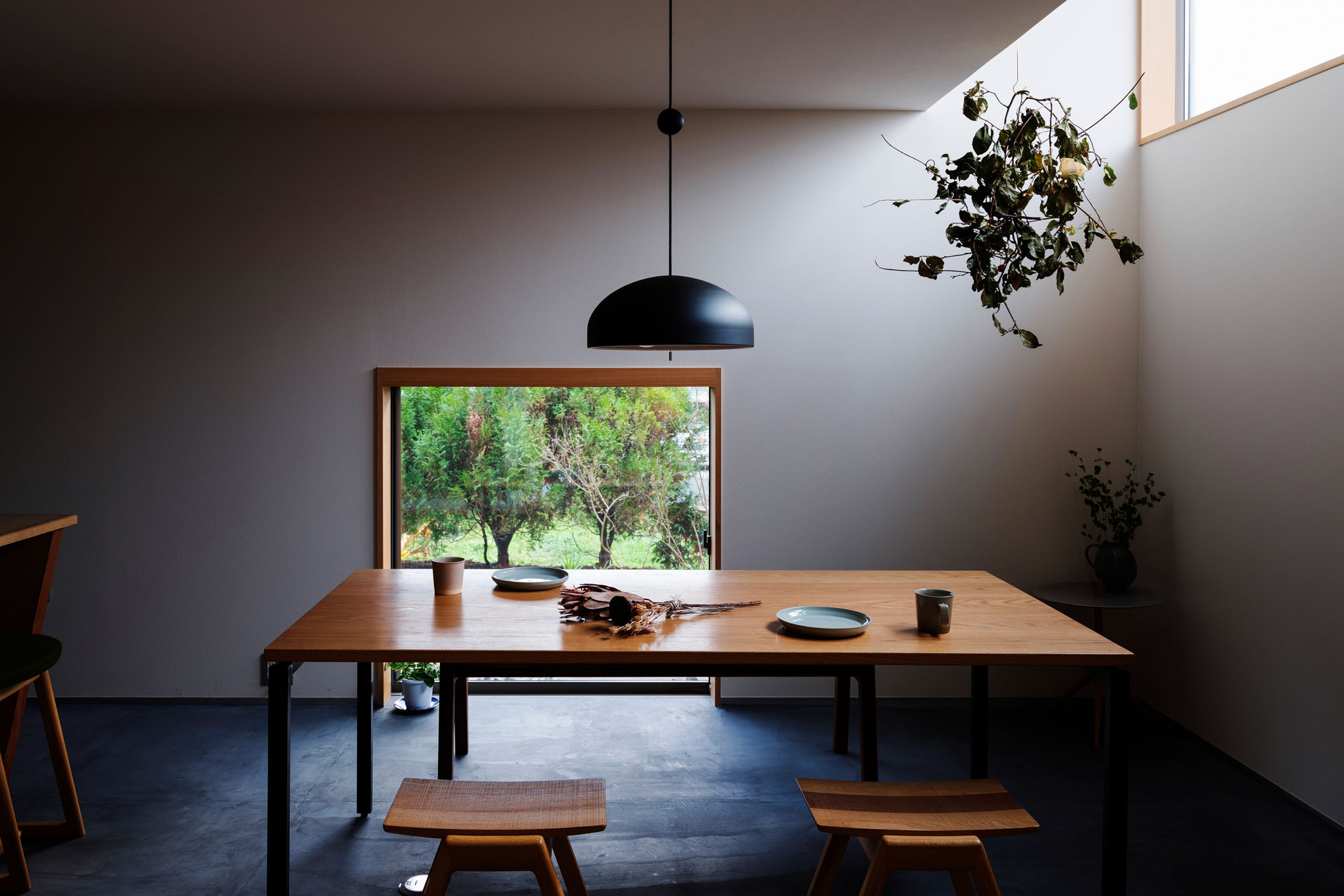 十字窓の家_室内_モルタルのダイニング