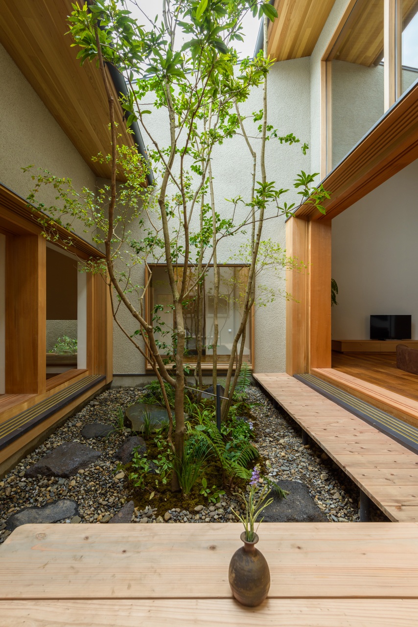 家の中の全ての光は、この中庭から取り入れる配置とした