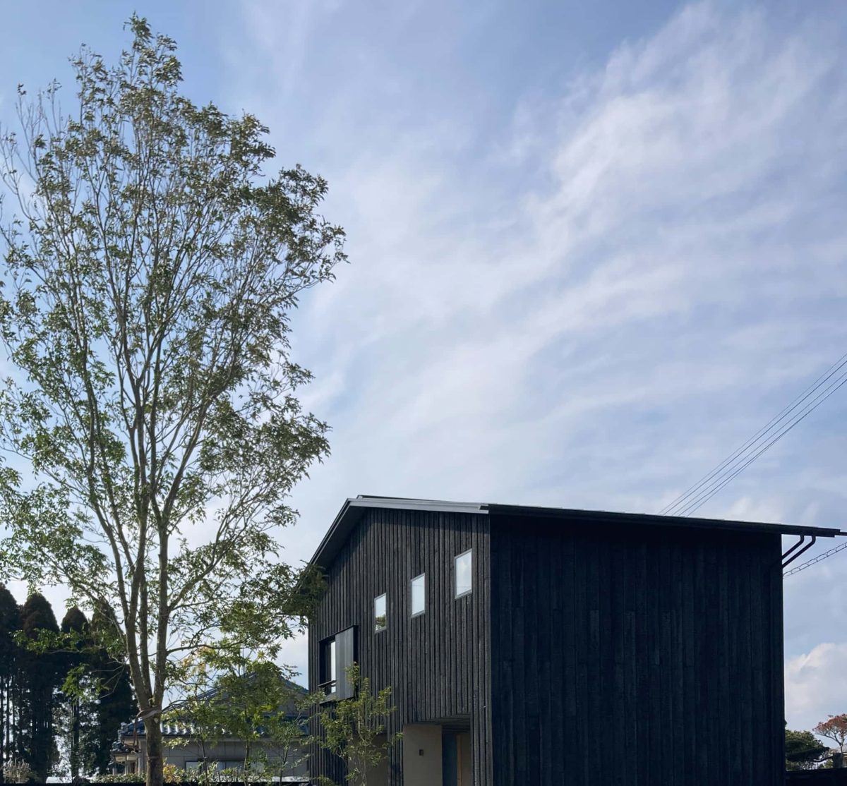 畳のリビングと造り付けのオリジナルソファ 造り付けのオリジナルキッチンと、丸いダイニングテーブルに合わせたオリジナルの丸いベンチ 北の空とのびのびとした景色を取り込む心地よいダイニングスペース リビングとつながる開放的なこども室のご提案 外壁は自社で作っている焼杉の外壁を採用 2階リビング4人家族