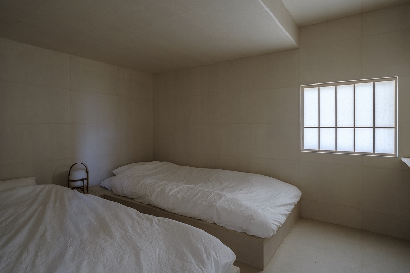 4.心地よく目覚める。壁・床・天井すべて和紙張りの寝室