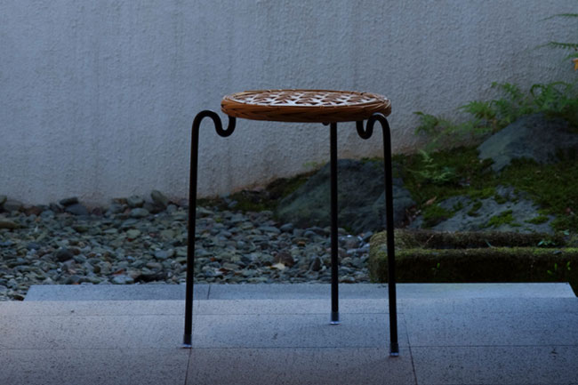 鹿児島は竹の一大産地であり、竹を使った工芸品も伝統的に作られていますが、それは地元でもあまり知られていません。そこで竹の特性を生かした家具製作に取り掛かり、生まれたのが「竹籠スツール」です。編み込みの竹の座面を活かすため、脚部は極力細く、鉄の丸鋼で仕上げました。