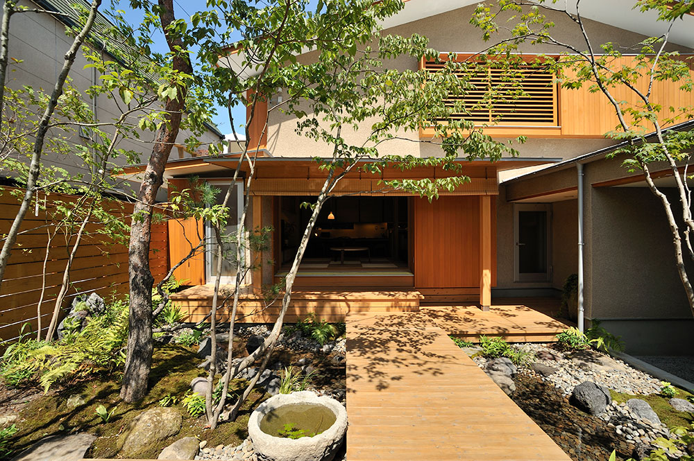 「 住宅街でも視線を気にせず外を愉しむ明るい暮らし 」