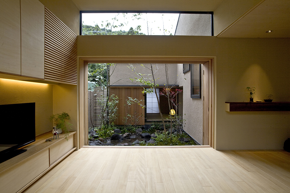 いろんな部屋から眺められる中庭