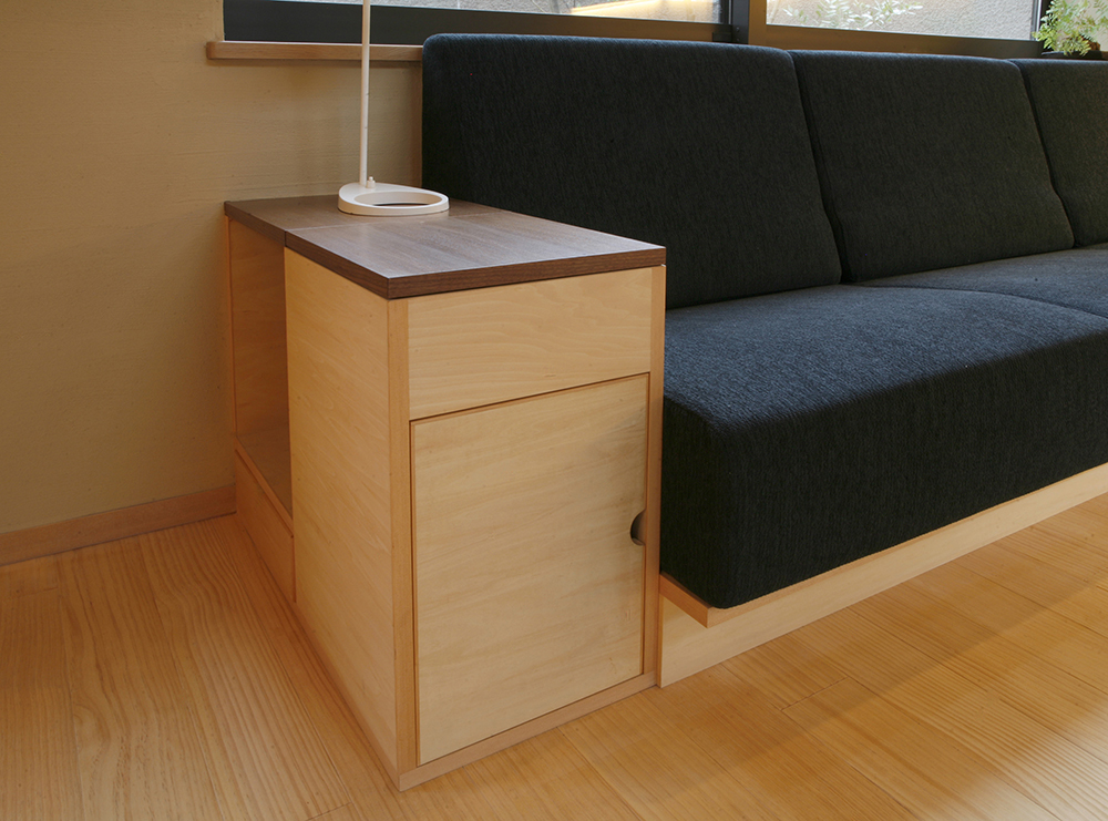ベガハウスオリジナルの造作ソファと組み合わせて使用可能なサイドテーブルです。