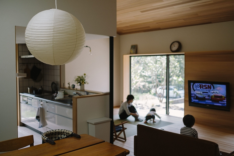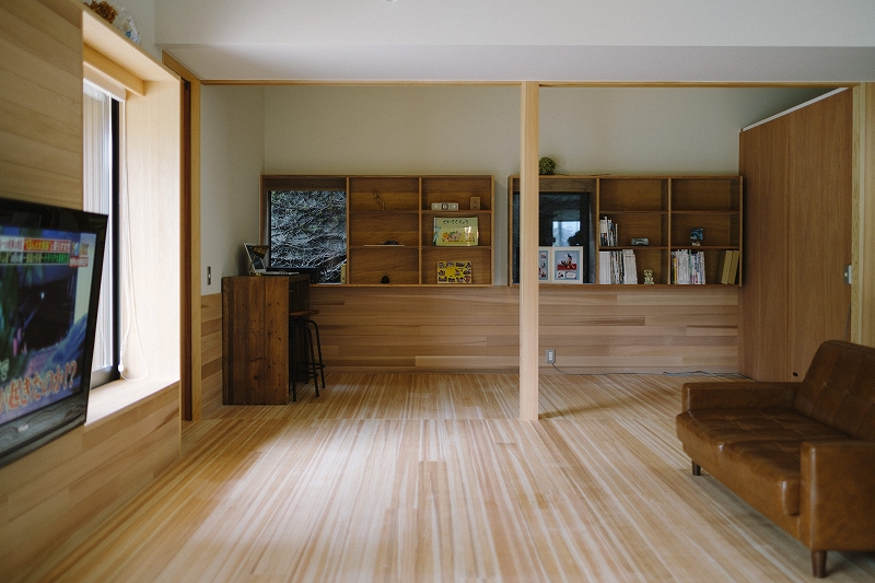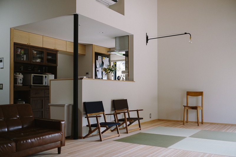 和室の機能も持ち合わせたリビングは、空間に余白を持たせることで家具の配置も遊びも自由自在です。