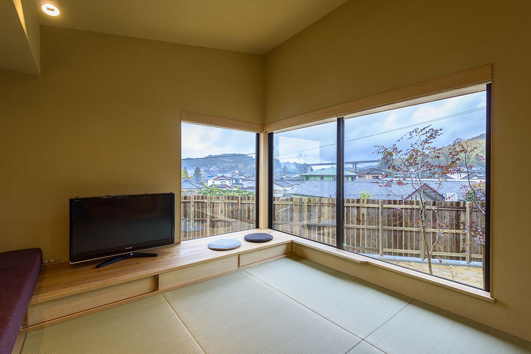 「小上がり畳リビングと、眺めのよい中庭のある平屋」