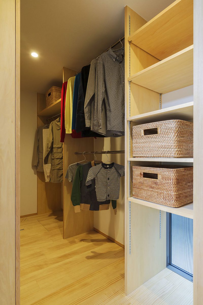 3台分の駐車場を確保するため、住宅の一部をスキップフロアにし、その下をビルドインガレージにしました。これにより、居住空間を圧迫することなく、駐車場を設けることができました。