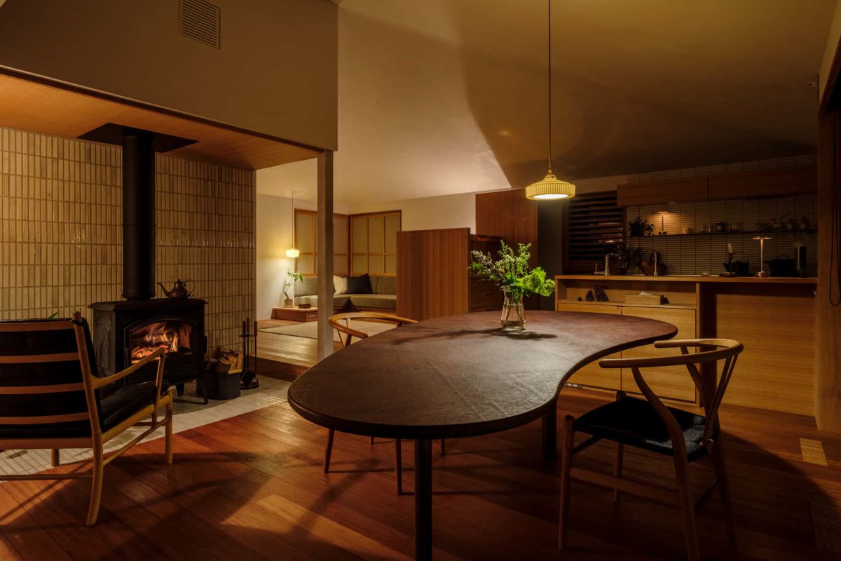 - 暮らしに合わせた、和紙でできた造作の大きなダイニングテーブル