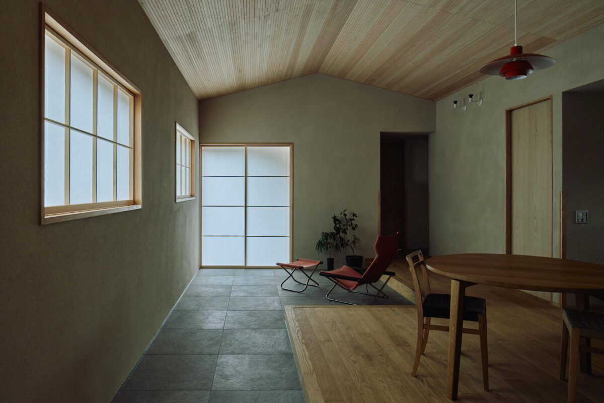 玄関を入ると土間リビングが広がります
