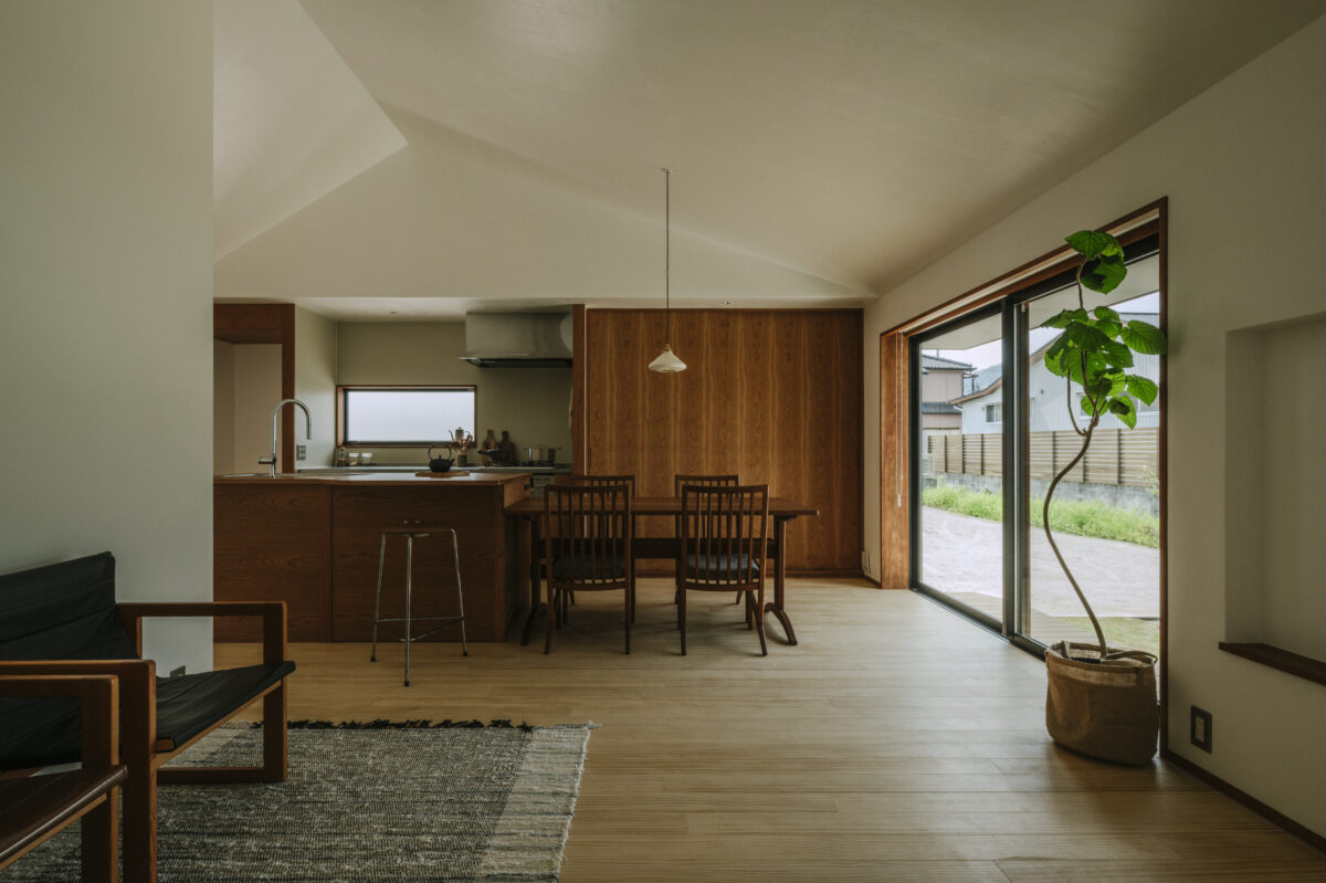 住宅に囲まれた場所でも、外への視線を確保し庭とつながる