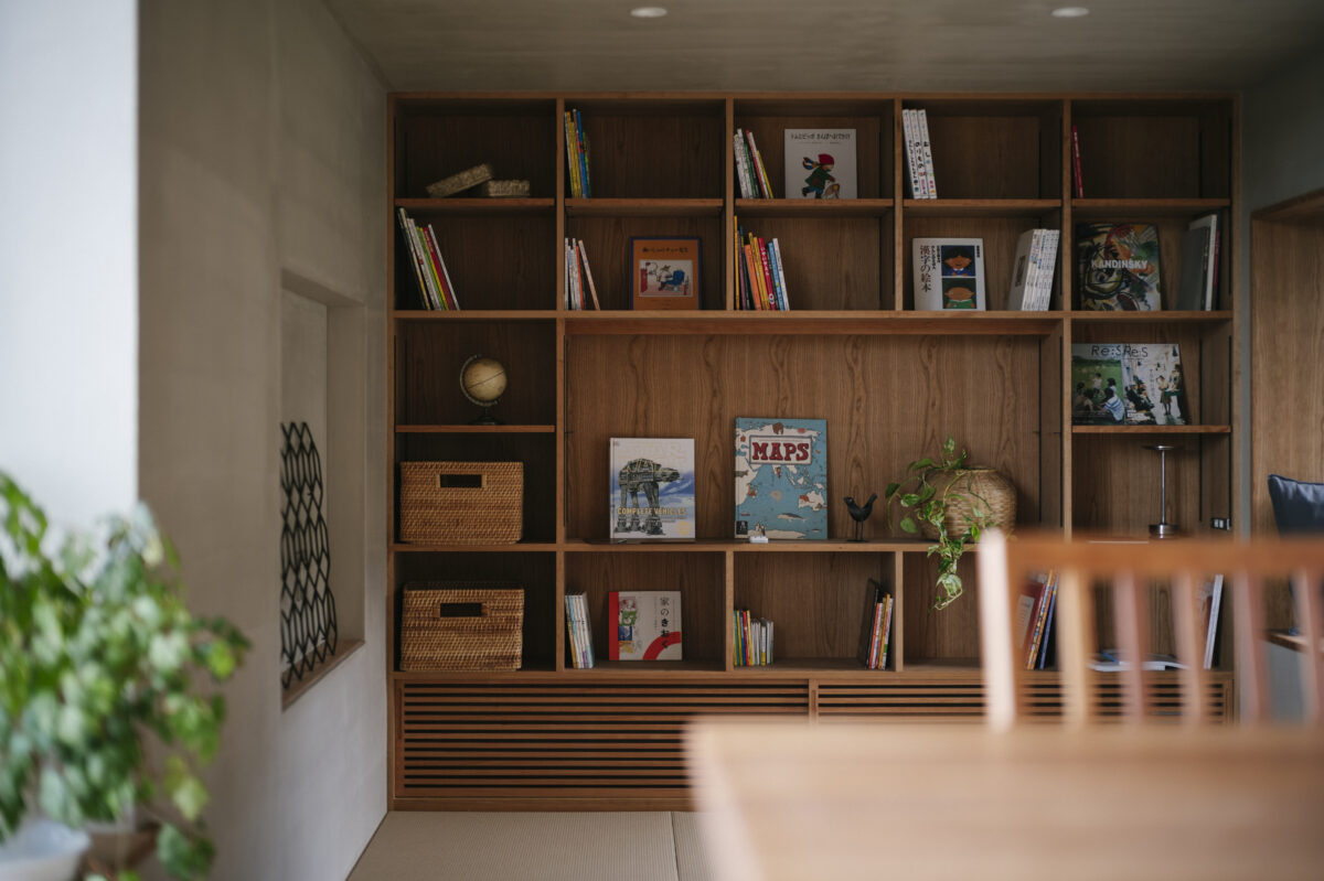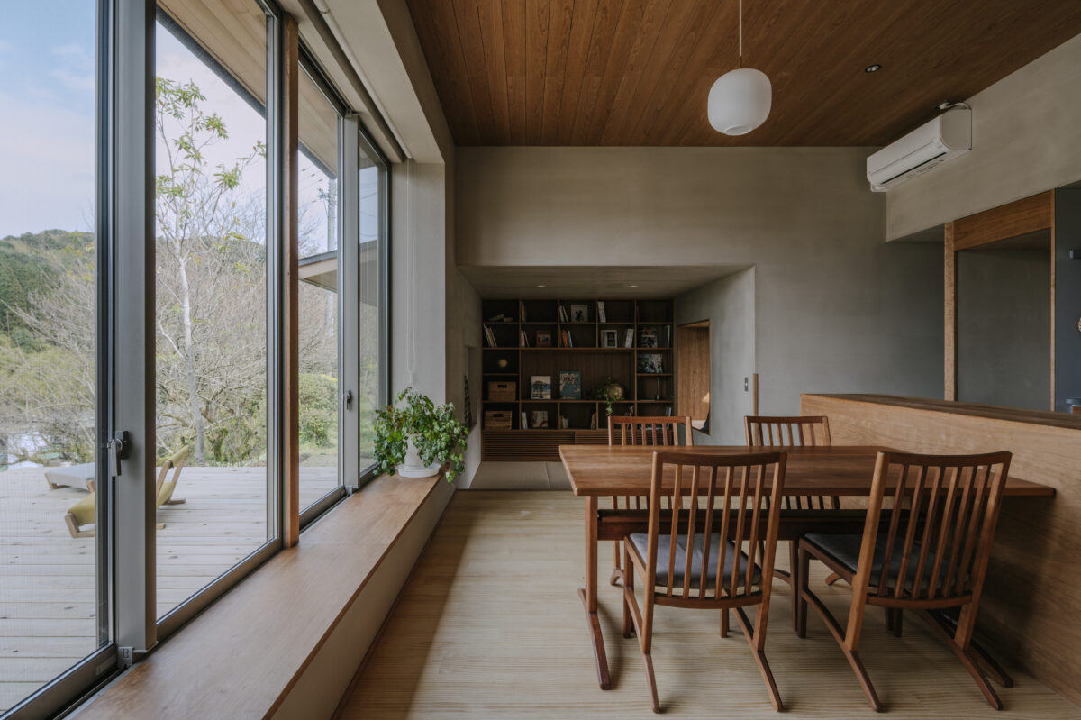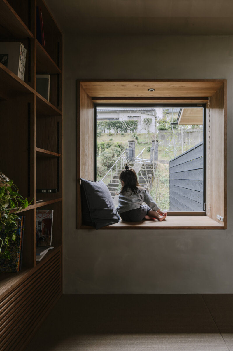 開放的な敷地だからこそ、窓辺には読書好きのオーナーさんの読書コーナーを家の中に点在させています