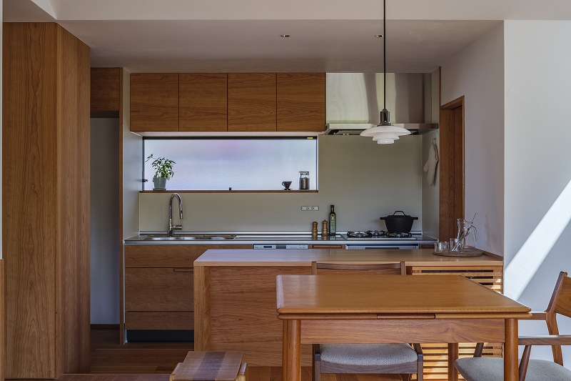 キッチンに立つ人とダイニングに座る人の目線の高さが合うように、
