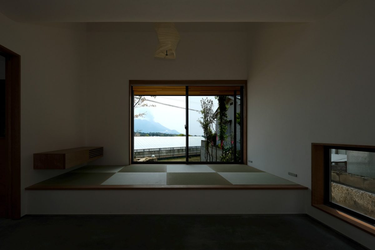 桜島を借景にできることは大きな特徴だが、将来視界を遮るように住宅が建つことも考えられるので、この景観に頼りすぎてはいけない。細長い土地の形状を活かしながら、北の空の美しさにも目を向けられるように設計した。