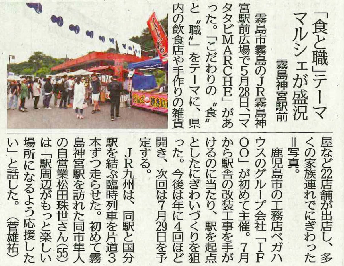 弊社グループ会社の株式会社IFOOが主催する「マタタビMARCHE」が南日本新聞に掲載されました。