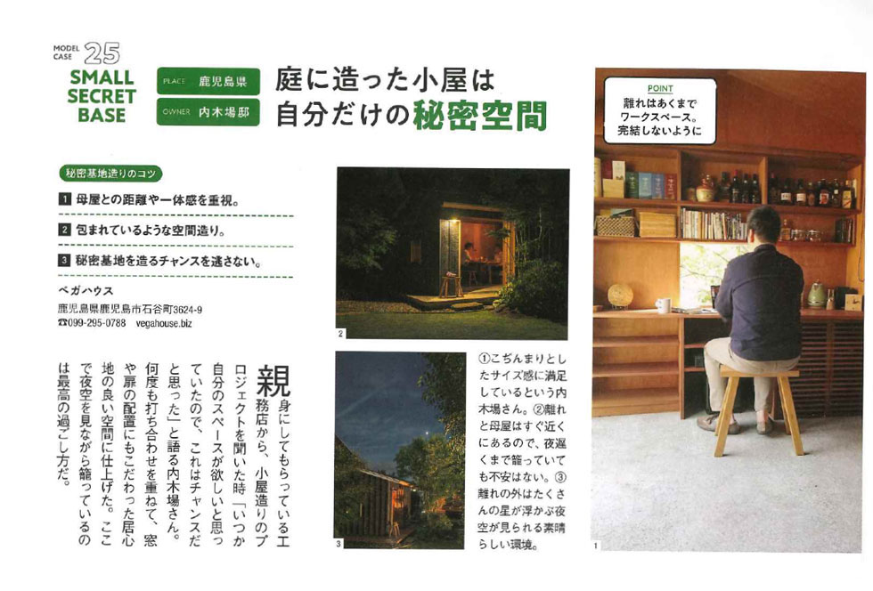 『男の隠れ家』2021年3月号特集「秘密基地のような小さな書斎。」にて、弊社設計の住宅が2件掲載されました。