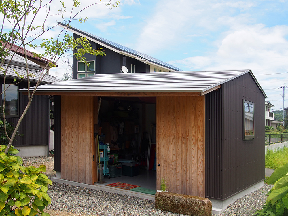 完成した3坪の小屋は、お家の外壁・屋根と素材をそろえ、見た目にも統一感がありました。ご主人の唯一の要望であった小さな窓もアクセントになっています。将来は、小屋の中で過ごせるように机を置いたり、棚を自作したりして楽しみたいとおっしゃっていました。